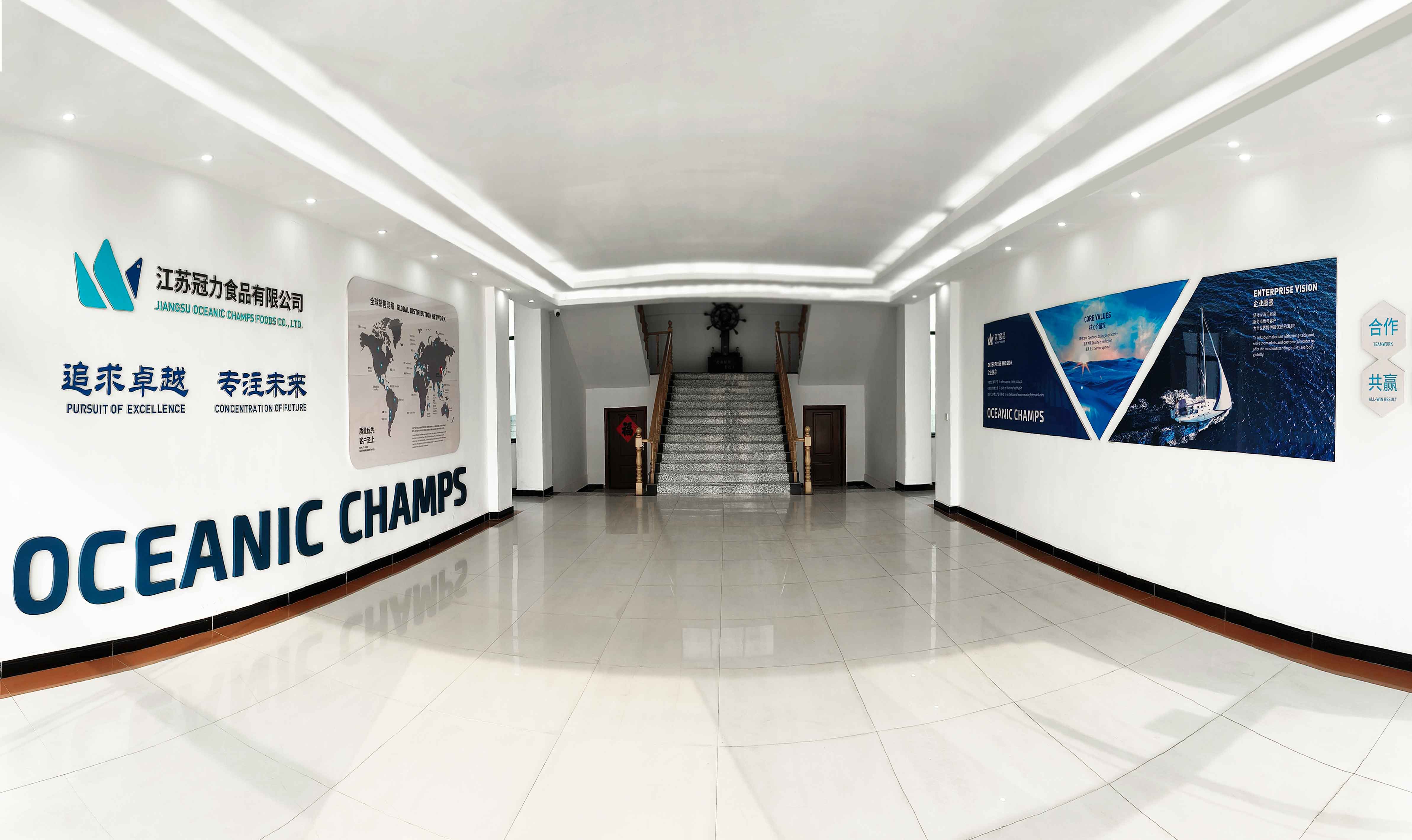 Jiangsu Oceanic Champs Foods Co., Ltd. is located in Ganyu, Lianyungang, Jiangsu Province. It is a comprehensive frozen food processing base independently invested and constructed by our company in response to the local government's investment promotion policy. In the future, it will gradually become the largest processing plant under our group company. The factory is divided into the first and second phases, with a total area of about 40,000 square meters. The first phase mainly includes office buildings, production workshops and cold storage facilities, etc., which are about 4,500 square meters. The internal layout design is strictly implemented in accordance with the export to the EU and FDA factory inspection standards. The cold storage capacity reaches 30,000 tons. The first phase of construction started in May 2022 and officially went into production on October 10. There are more than 300 front-line workers in the workshop, and 3 independent production lines process cleaned squid products, value-added squid products, and ready-to-eat prepared squid products. When the factory is in full production, the daily raw material processing capacity is about 55 tons. After the second phase workshop is put into production, the daily raw material processing capacity is about 70 tons. The total production capacity of the two factories will reach 95 tons per day, and they are all export-level in terms of production scale, quality control standards, and qualification certifications.